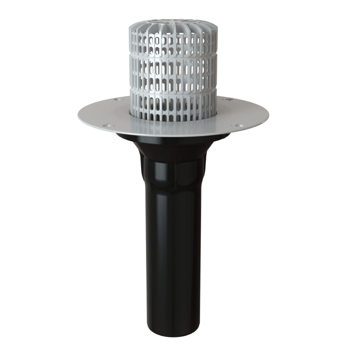 Воронка XL503 – изделие с корпусом из ПВХ и листоуловителем с удлиненным вертикальным выпускным патрубком из ударопрочного полипропилена. Корпус воронки из ПВХ приваривается к гидроизоляционному слою из ПВХ мембраны, обеспечивая этим герметичное и прочное соединение. Вертикальный патрубок из полипропилена допускает возможность сваривания с водосточной трубой через муфту.